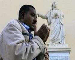 Dozens of far-right activists and local residents threw eggs and taunted hundreds of Muslim immigrants as they gathered to pray in a central square for Eid al-Adha surrounded by a protective cordon of riot police.