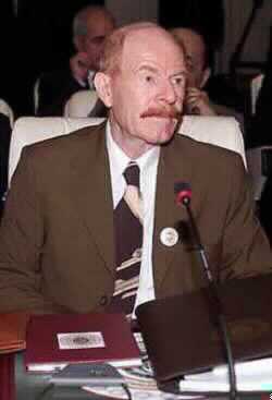 Saddam Hussein's right-hand man, Izzat Ibrahim, lashed out at U.S. ally Kuwait on March 5, 2003, calling its representative at an emergency Islamic summit in the Qatari capital Doha a 'monkey' and a 'traitor.' 'Shut up you minion, you (U.S.) agent, you monkey. You are addressing Iraq ,' spat out at an unidentified Kuwaiti delegate. Ibrahim is seen during an Arab League summit in Sharm el-Sheikh, Egypt, March 1. (Aladin Abdel Naby/Reuter