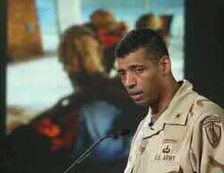 U.S. Brigadier General Vincent Brooks briefs the media Coalition Central Command in Qatar April 17, 2003. Brooks said U.S. forces had been attacking fighters of the Iranian opposition Mujahideen i-Khalq in Iraq , but hoped to arrange a cease-fire with them in the next few days. 'We know that there's a presence of the Mujahideen i-Khalq inside of Iraq and indeed we have been targeting them for some time,' Brooks said. Photo by Andrew Winning/Reuters