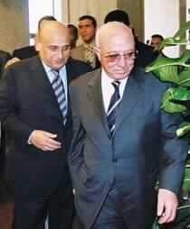 Egypt's Foreign Minister Ahmed Maher, left, walks with Palestinian Prime Minister Ahmed Qureia prior to their meeting Wednesday Oct. 22, 2003 in Cairo. (AP Photo/Mohamad el-Sehety)